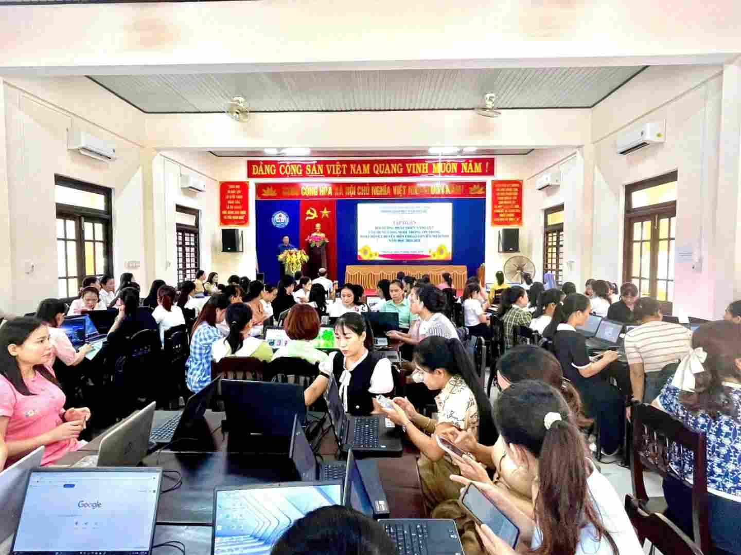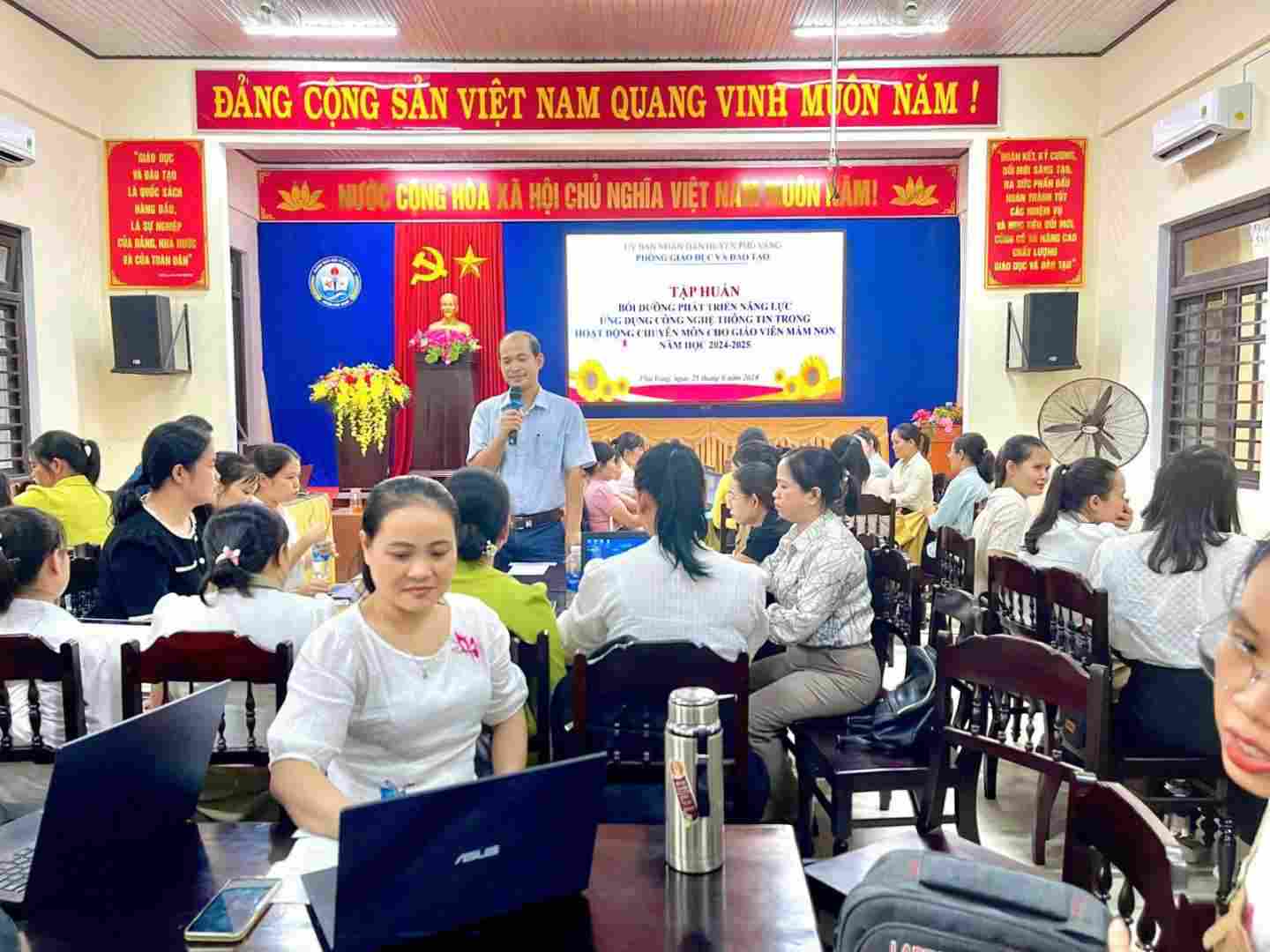Thực hiện nhiệm vụ năm học 2024–2025, ngày 25/9/2024, Phòng Giáo dục và Đào tạo đã tổ chức lớp tập huấn “Bồi dưỡng, phát triển năng lực ứng dụng công nghệ thông tin trong tổ chức hoạt động chuyên môn cho giáo viên mầm non”. Tham gia tập huấn có 99 đại biểu gồm lãnh đạo, chuyên viên Phòng GDĐT, cán bộ quản lý và giáo viên cốt cán đến từ các cơ sở giáo dục mầm non công lập và ngoài công lập.