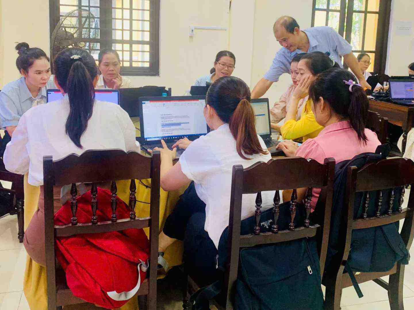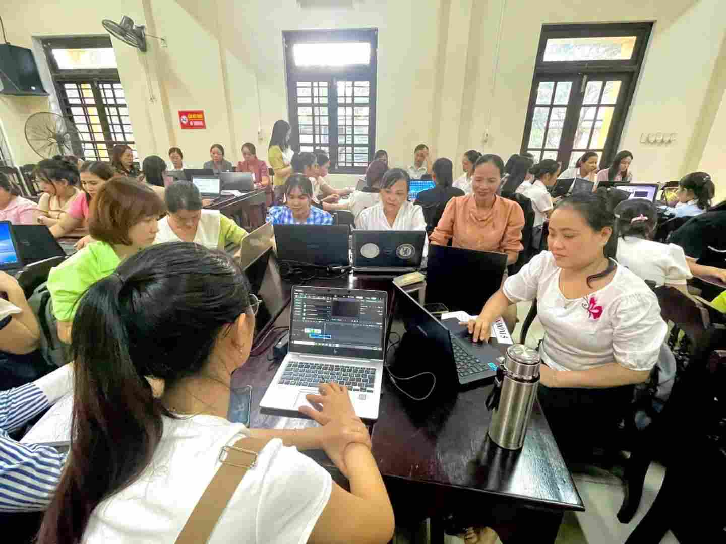 Phần thực hành được tổ chức theo nhóm, mỗi giáo viên đều có cơ hội thao tác thực tế và sáng tạo sản phẩm. Cuối buổi, 4 sản phẩm tiêu biểu đã được lựa chọn trình bày tại lớp. Tập huấn không chỉ mang lại kiến thức mới mà còn truyền cảm hứng cho giáo viên đổi mới phương pháp, tích cực ứng dụng công nghệ vào hoạt động chuyên môn.